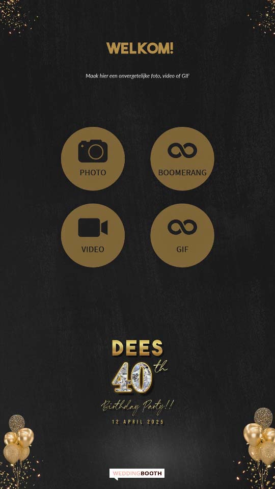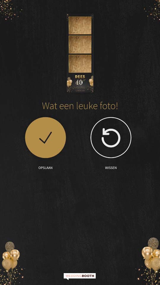 Na je bestelling maken wij de booth (schermen + prints) mooi passend bij je feest. Jij levert je logo/uitnodiging/branding aan in goede kwaliteit — wij zetten het netjes om naar een coherent geheel.